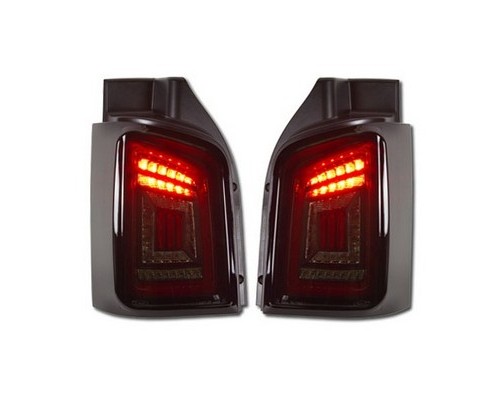 Diese LED Rückleuchten sind für VW T5-Fahrzeuge aus den Jahren 2003-2009 und T5 GP-Fahrzeuge von 2009-2014 mit LED Blinkern und einer roten Lightbar konzipiert. Sie verfügen über ein E-Prüfzeichen und sind somit für den Straßenverkehr gemäß der Straßenverkehrs-Zulassungs-Ordnung (Straßenverkehrsordnung) zugelassen. Die Rückleuchten sind geeignet für VW T5 und T5 GP-Modelle, darunter Multivan, Caravelle und Transporter.