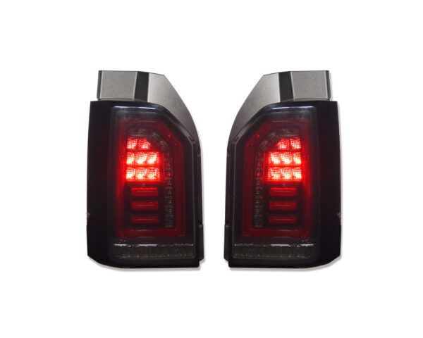 Diese LED Rückleuchten sind ein Upgrade-Design für VW T6-Fahrzeuge mit LED Blinkern. Sie sind mit einem E-Prüfzeichen versehen und somit im Bereich der Straßenverkehrs-Zulassungs-Ordnung (Straßenverkehrsordnung) zugelassen. Diese Rückleuchten sind geeignet für VW T6-Modelle (Multivan, Caravelle, Transporter) ab dem Baujahr 2015+ und passen sowohl zu werkseitigen Halogen- als auch LED-Rückleuchten.