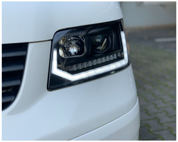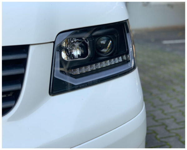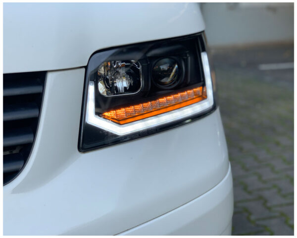 LED Tagfahrlicht-Scheinwerfer VW T5.1 03-09 mit dynamischem Blinker im Upgrade Design