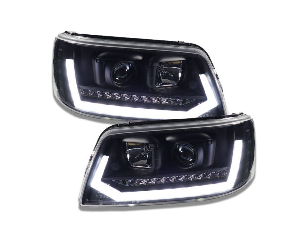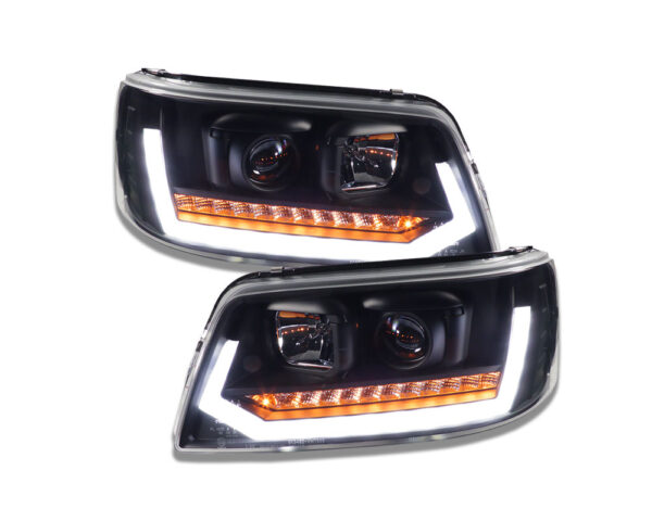 Startseite » Shop » VW Volkswagen » T5 Bus » T5 Bus 03-09 » Scheinwerfer » LED Tagfahrlicht-Scheinwerfer VW T5 03-09 mit dynamischem Blinker schwarz