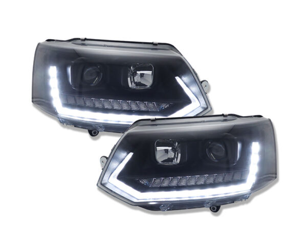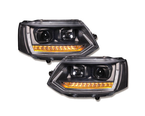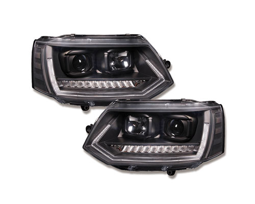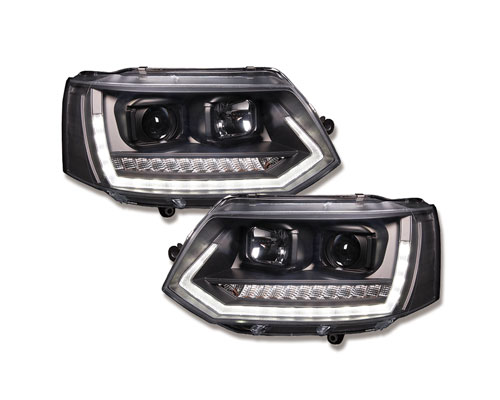 Startseite » Shop » VW Volkswagen » T5 Bus » T5 Bus 03-09 » Rückleuchten » LED Tagfahrlicht-Scheinwerfer VW T5 GP 09-14 schwarz mit dynamischem Blinker
