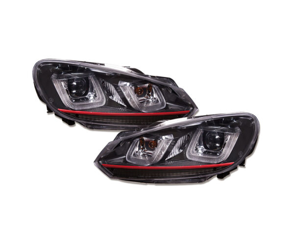 LED Tagfahrlicht-Upgrade-Scheinwerfer VW Golf 6 VI GTI / R32 DESIGN 08-13 schwarz/rot