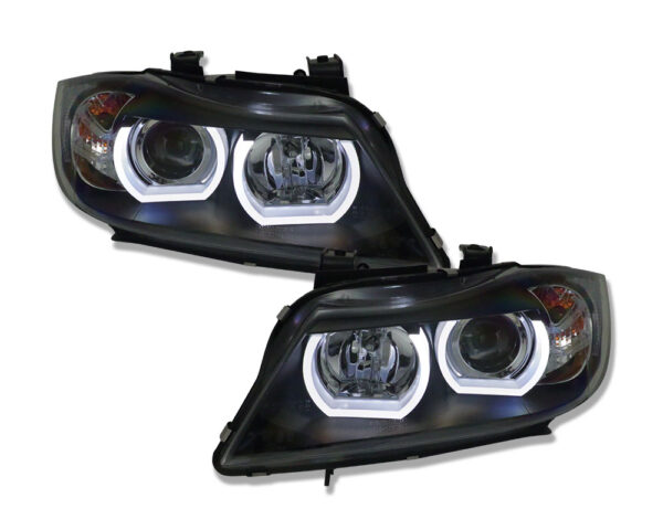 Scheinwerfer mit 3D LED Standlichtringen BMW 3er E90/E91 05-08 schwarz für Modelle mit Xenon