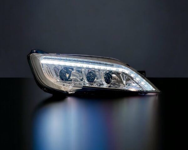 Die Leuchtmittel in den Scheinwerfern umfassen LED-Projektionsmodule für das Aufblend- und Abblendlicht, einen dynamischen LED-Blinker und LED-Tagfahrlicht. Die Farbtemperatur beträgt 6000 Kelvin für das Fern- und Abblendlicht. Die Helligkeit liegt bei 1950 lm für das Fernlicht und 1500 lm für das Abblendlicht. Die Wattzahl beträgt 20 Watt für das Fernlicht und 12 Watt für das Abblendlicht, wobei 3 separate Hochleistungs-Projektoren verwendet werden.